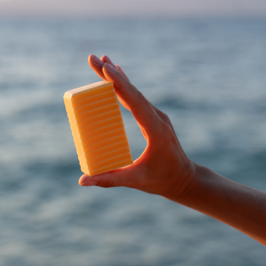 Schäume die Seife mit warmem Wasser zwischen den Händen oder direkt auf der Haut auf. Verteile den cremigen Schaum sanft und spüle ihn gründlich ab.