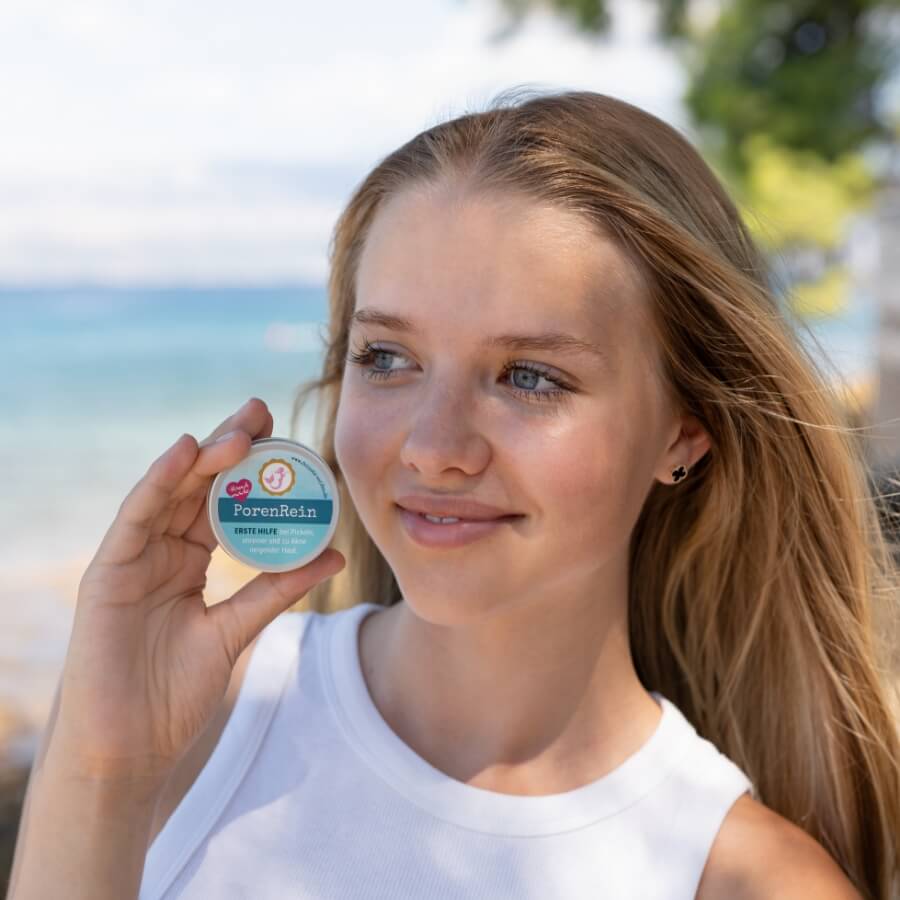 Die PorenRein PickelPaste ist dein natürlicher Helfer gegen Pickel, Hautunreinheiten und kleine Entzündungen. Ob als Pickelcreme über Nacht oder punktuelles SOS-Mittel – diese wasserfreie Paste wirkt, ohne die Haut auszutrocknen. Pflanzliche Öle, Zinkoxid und Heilerde unterstützen deine Haut auf sanfte Weise – ganz ohne aggressive Inhaltsstoffe.