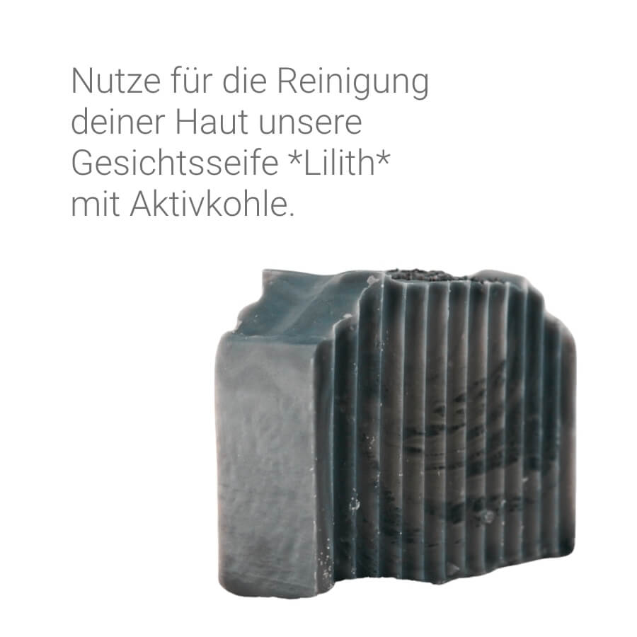 - Reinigen: Vor der Anwendung gründlich reinigen – z. B. mit der Lilith Gesichtsseife mit Aktivkohle.