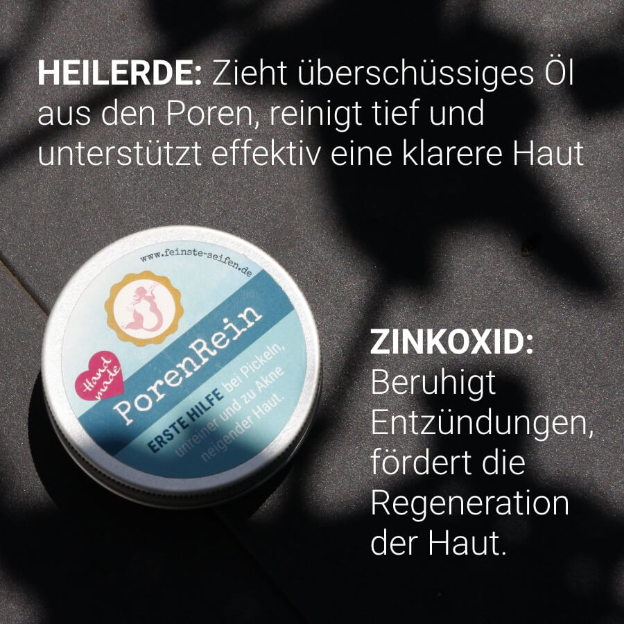 - Zinkoxid & Heilerde: Beliebte Hausmittel gegen Pickel – sie helfen, überschüssigen Talg zu binden und Hautunreinheiten sichtbar zu reduzieren.